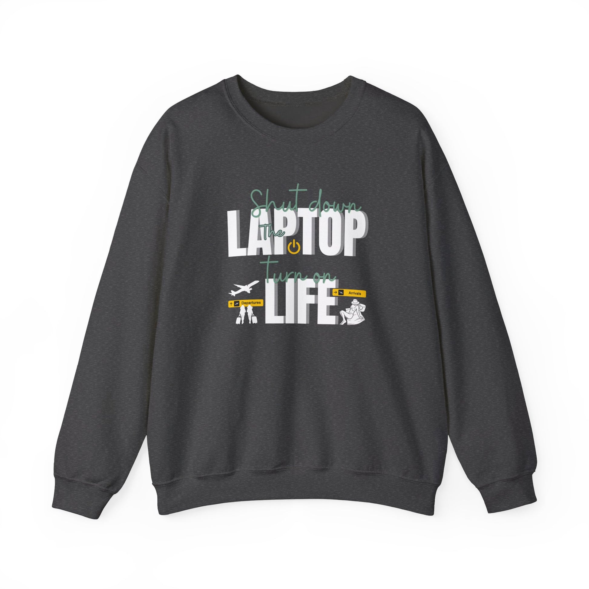 Cozy Getaway Sweatshirt | Shut Down the Laptop, Turn On Life Hoodie for Travel Lovers