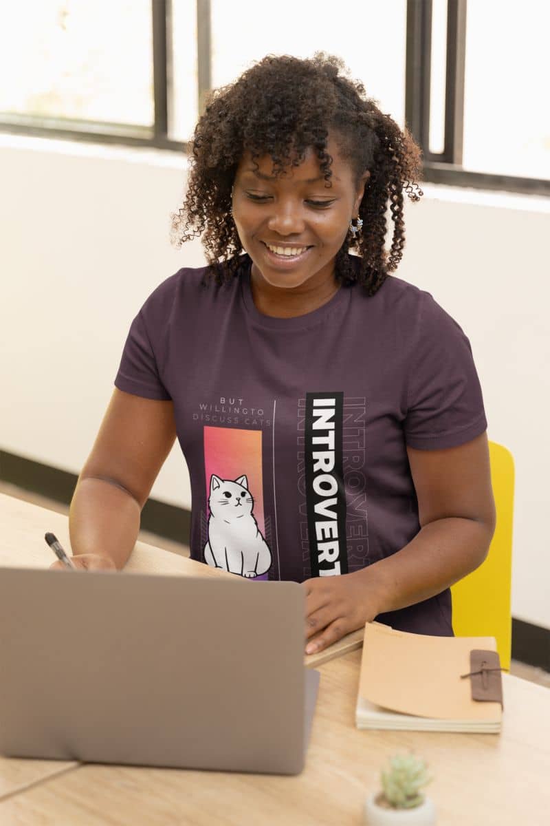 Embrace your introverted, cat-loving side with this casual cat-themed t-shirt that’s equal parts cozy and clever. Whether you’re curled up with your cat or out running errands, this tee keeps you comfortable while making a statement.