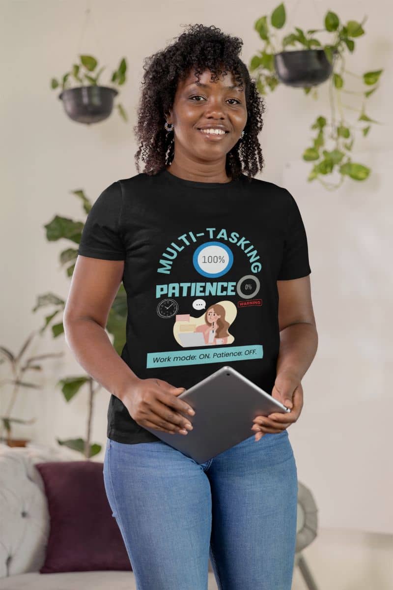 Because busy women deserve tees that understand the grind. Treat yourself to the Funny Multi-Tasking T-Shirt today and show the world what 100% multitasking and 0% patience really looks like.