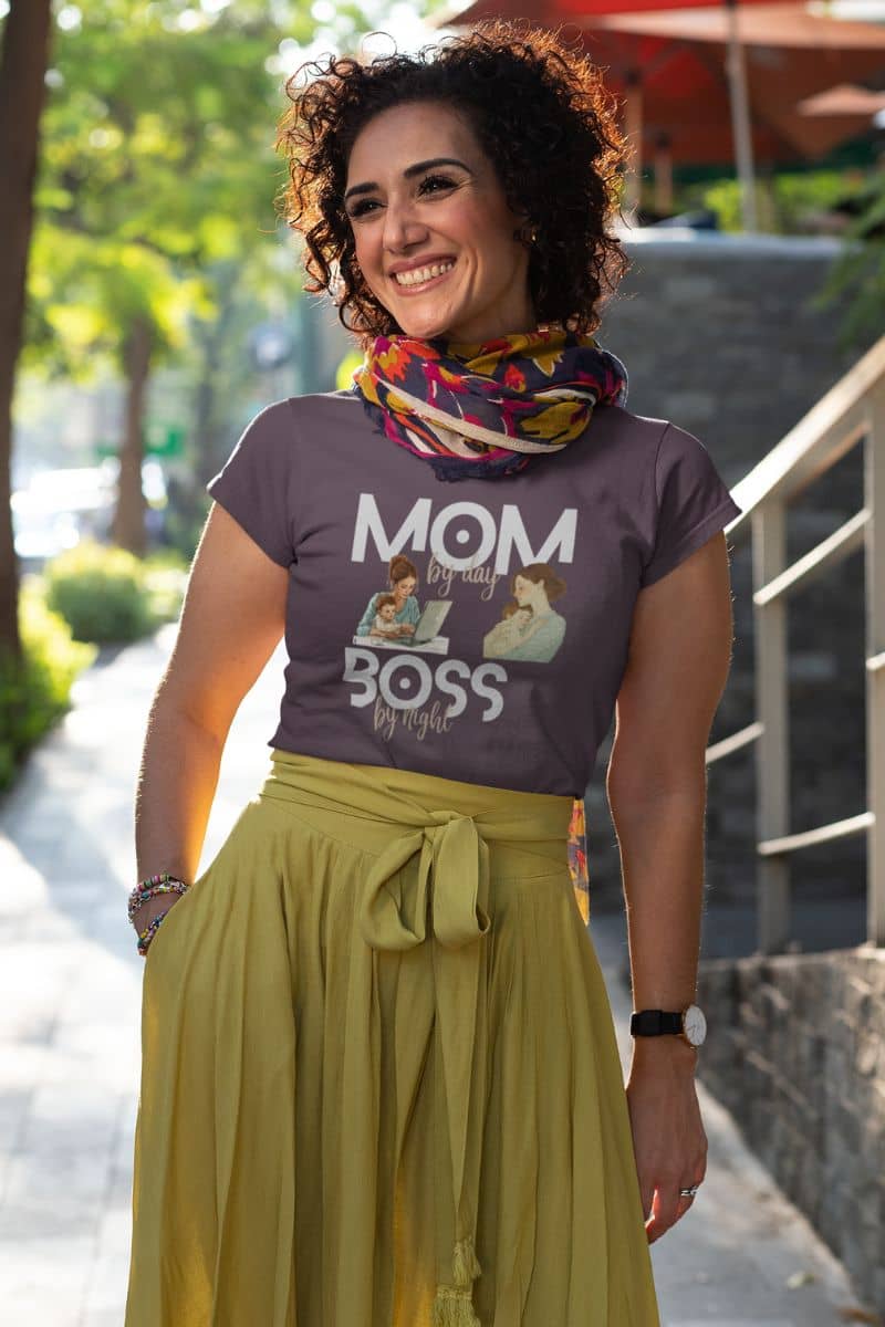Mother’s Day T-Shirt: “Mom by Day, Boss by Night” – Stylish Gift for Strong Moms