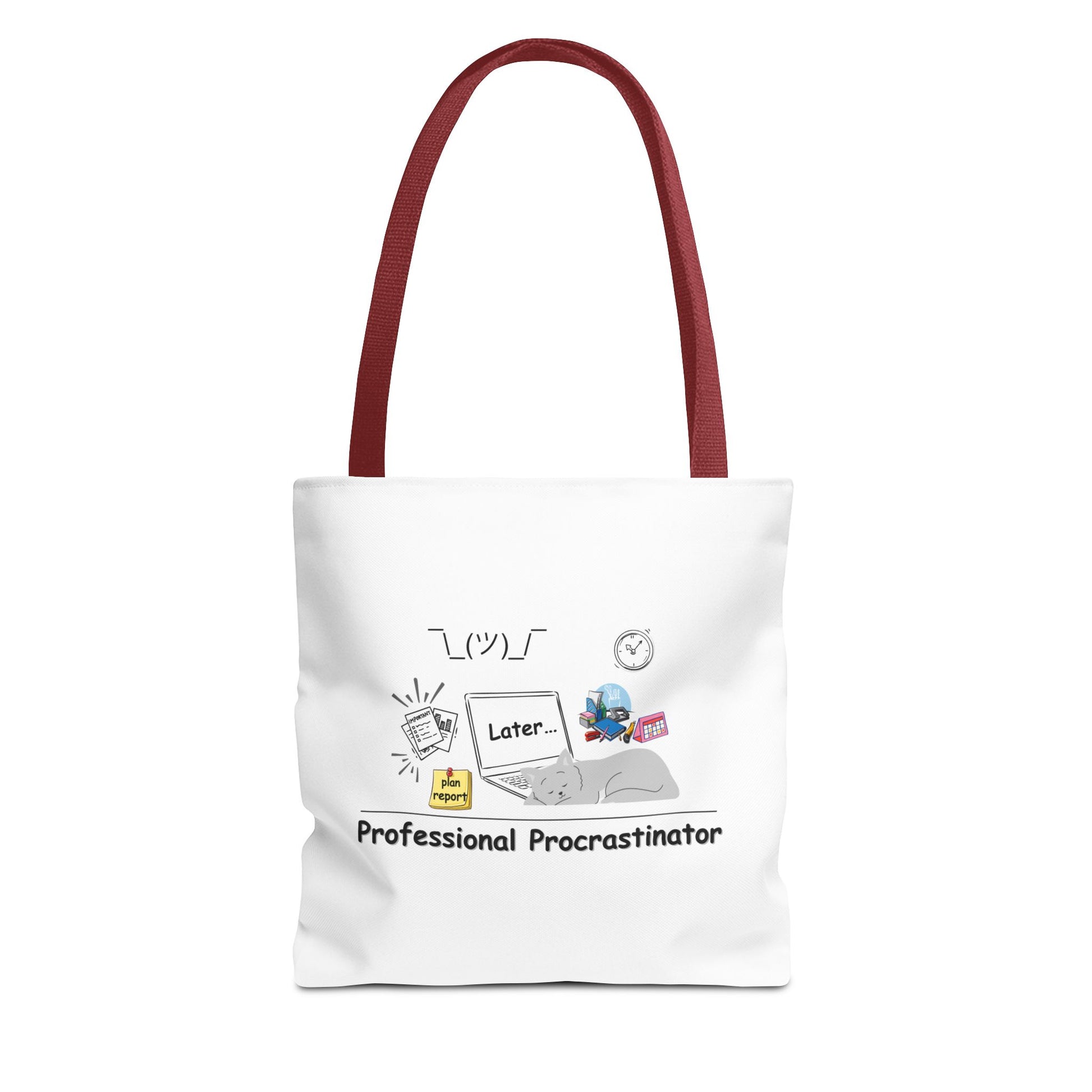 Whether you're a remote worker dodging deadlines, a freelancer juggling tasks while binging cat videos, or a student with a backpack full of intentions (and snacks), this tote captures your essence: professional on the outside, master procrastinator on the inside.