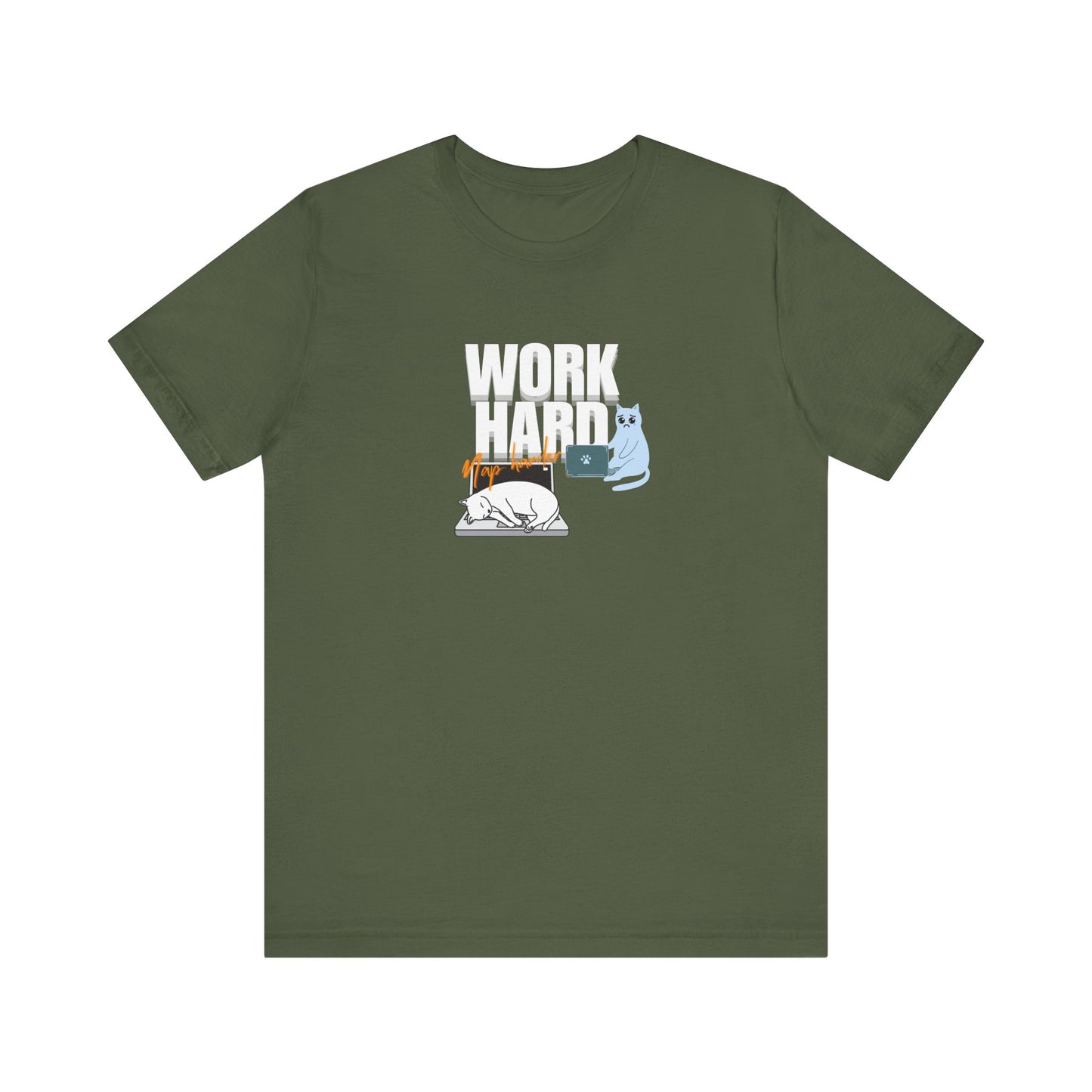 Work Hard, Nap Harder T-Shirt – Funny Design for Cat Lovers & Hard Workers